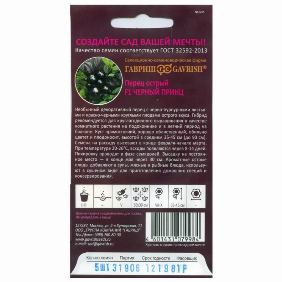 ПЕРЕЦ ОСТРЫЙ ЧЕРНЫЙ ПРИНЦ F1 5 ШТ гавриш