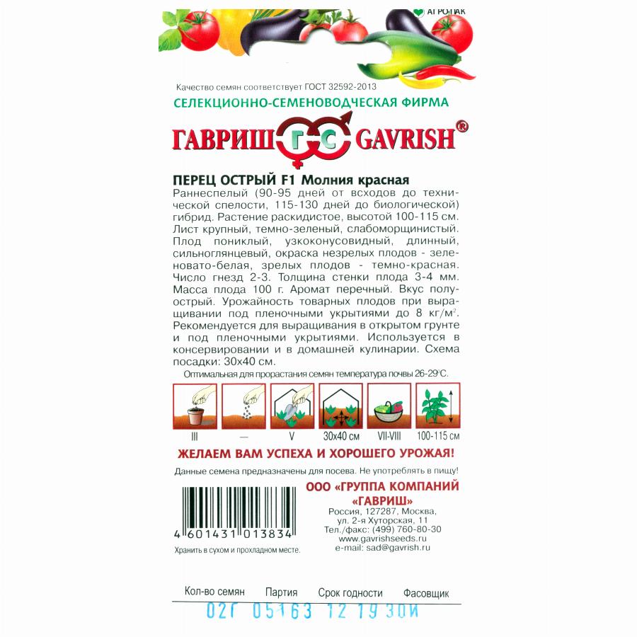 ПЕРЕЦ ОСТРЫЙ МОЛНИЯ КРАСНАЯ F1 0,2 Г гавриш