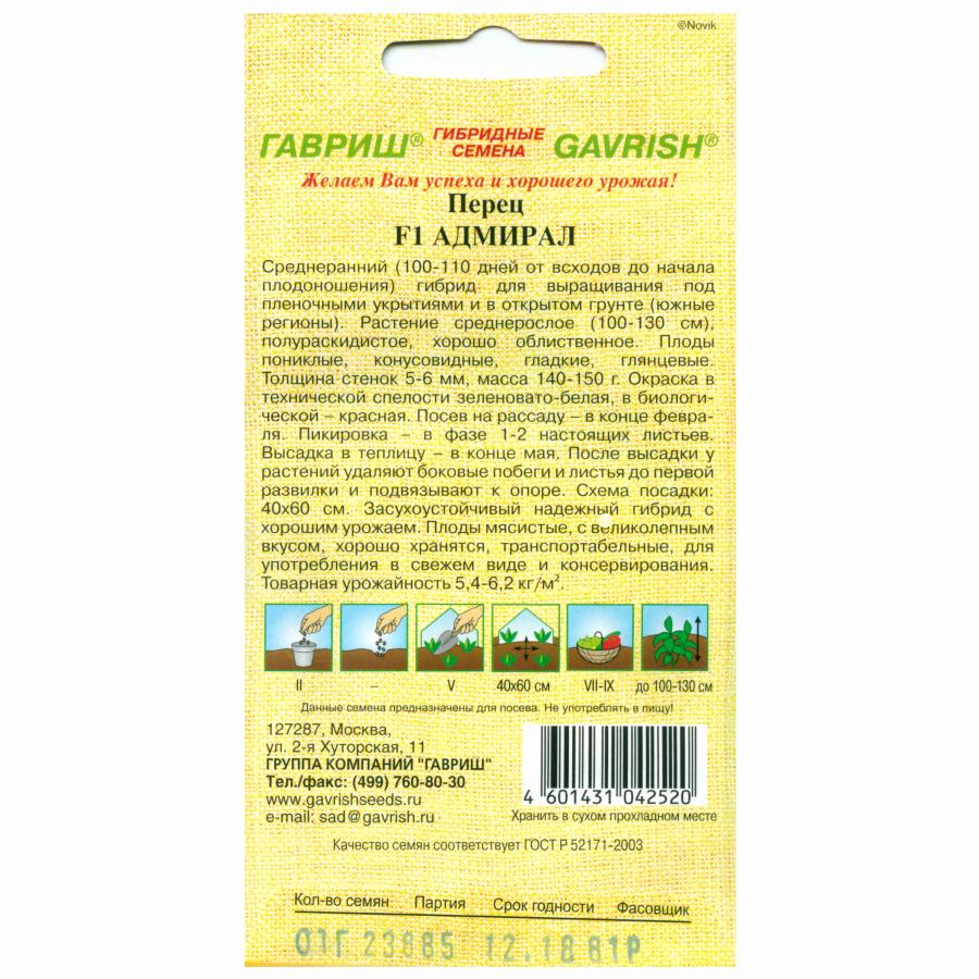ПЕРЕЦ СЛАДКИЙ АДМИРАЛ F1 15 ШТ гавриш