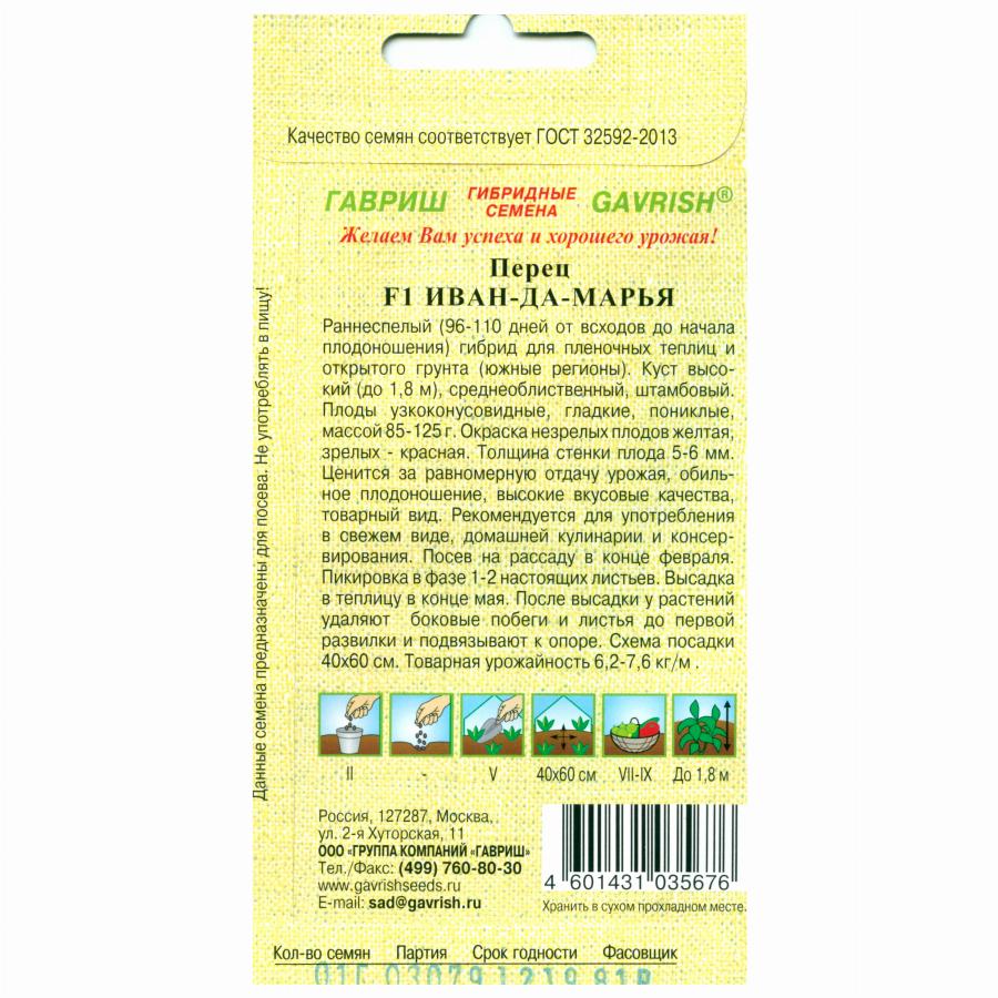 ПЕРЕЦ СЛАДКИЙ ИВАН-ДА-МАРЬЯ F1 0,1 Г гавриш