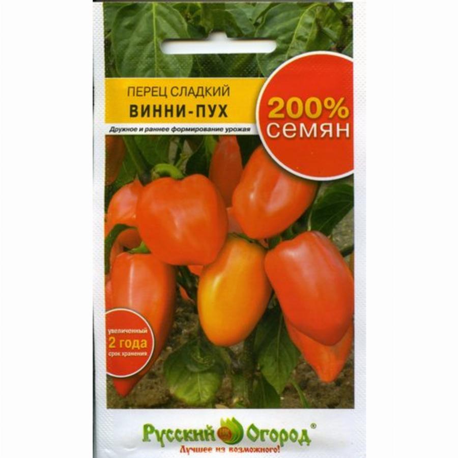 Винни-Пух — сорт скороспелый: плодоношение наступает на 100—110-й день после появления всходов, плодоносит 10—15 дней. Куст низкорослый, букетного типа, высотой 25—30 см. Форма, окраска и размеры плода, как у Ласточки. Содержание витамина С — 100— 120 мг/100 г в технической спелости и 158—195 мг/100 г — в биологической. Урожайность в зимних и пленочных теплицах от 2 до 4 кг/м2. Отличается одновременным созреванием всех плодов на растении и рекомендуется для короткого периода выращивания в рассадных теплицах как уплотнитель среднерослых сортов типа Ласточка, а также для конвейерного выращивания с февраля по декабрь.