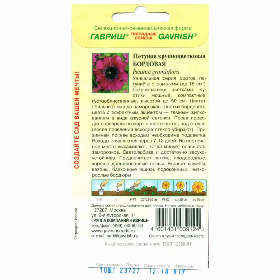 ПЕТУНИЯ КРУПНОЦВЕТКОВАЯ БОРДОВАЯ 10 ШТ гавриш