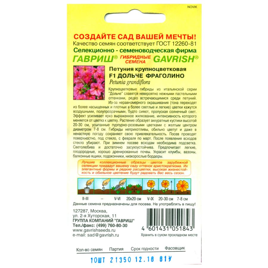 ПЕТУНИЯ КРУПНОЦВЕТКОВАЯ F1 ДОЛЬЧЕ ФРАГОЛИНО 10 ШТ гавриш