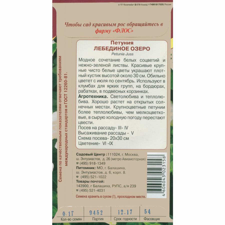 ПЕТУНИЯ ЛЕБЕДИНОЕ ОЗЕРО 0,1 Г флос