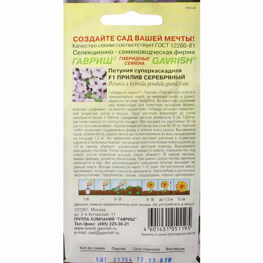 ПЕТУНИЯ СУПЕРКАСКАДНАЯ F1 ПРИЛИВ СЕРЕБРЯННЫЙ 5 ШТ гавриш