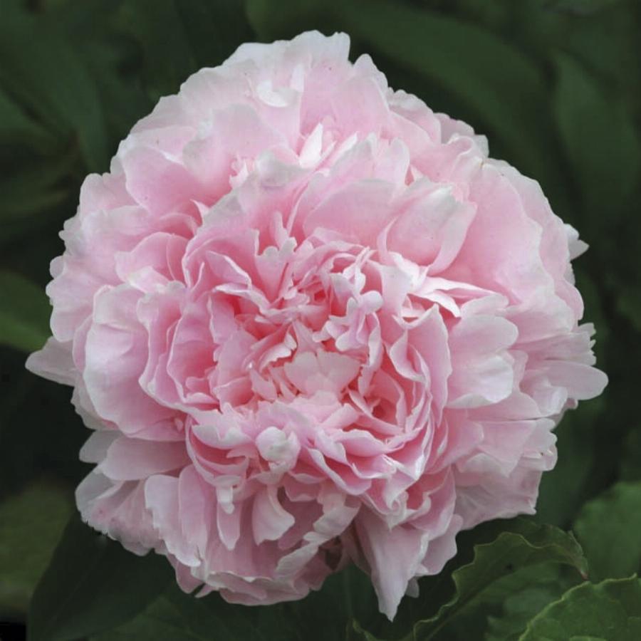 Цветок светло-розовый с кремовым оттенком, густомахровый, крупный, d=16-18 см. Куст h=100 см. Стебли прочные, облиственность хорошая. Листья темно-зеленые. Срок цветения — средний.