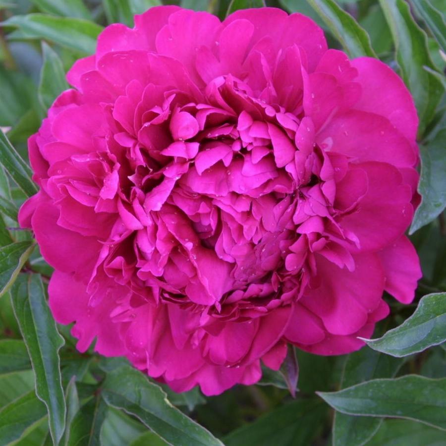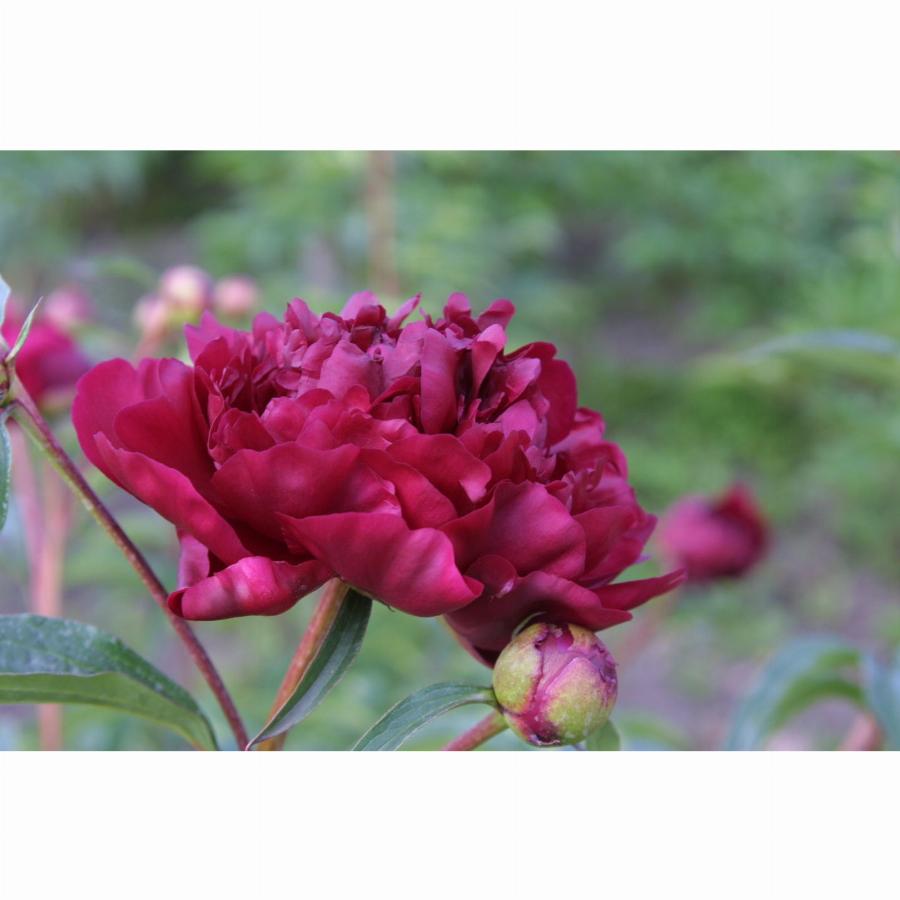 Махровый розовидный-шаровидный, лепестки с разрезанными краями. Темно-красно-коричневый. Стебли прямые, чуть окрашены. Листья узкие, темно-зеленые. Диаметр 16 см, высота 90 см. Запах пряный. Ранне-средний срок цветения.