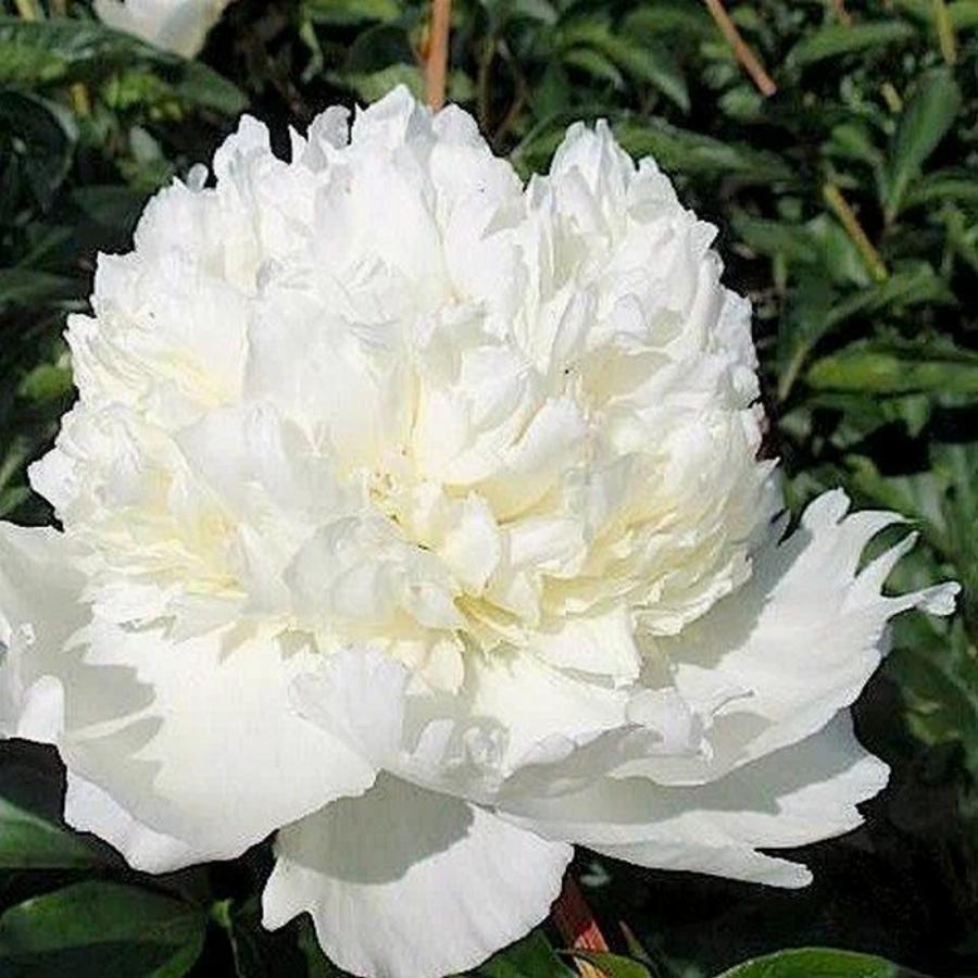 Махровый бомбовидный. Красивейший цветок диаметром 17 см, компактный, с кремово-белыми внешними лепестками и пушистым белым центром, в основании жёлтым. Имеет пестики. Ароматный. Высота 75 см. На сильных цветоносах по 4 бутона. Срок цветения средний. Отличный пион для сада и срезки.
