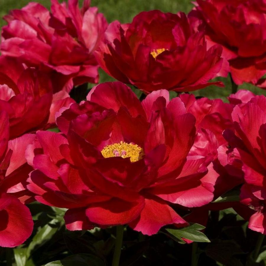 Гибрид. Простой – полумахровый. Цветок диаметром 16 см, чашевидный, из 1-3 рядов лепестков, яркий ало-красный блестящий с маленьким центром из жёлтых тычинок, который в процессе цветения вырастает до крупного шара. Тычиночные нити к конце цветения красноватые. Пестики бледно-зелёные с фуксиновыми рыльцами. Куст сильный. Высота 75 см. Цветение обильное в ранне-средние сроки.