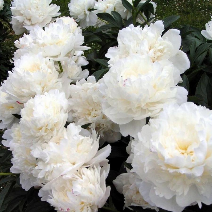 Махровые шаровидные цветки до 18 см с насыщенным ароматом розы! Молочные лепестки с кремовым обертоном у основания создают впечатление, что белый цветок подсвечен изнутри. Иногда на центральных лепестках попадаются контрастные малиновые полосы. Прочные цветоносы хорошо держат цветки.. Высота растения до 80 см.