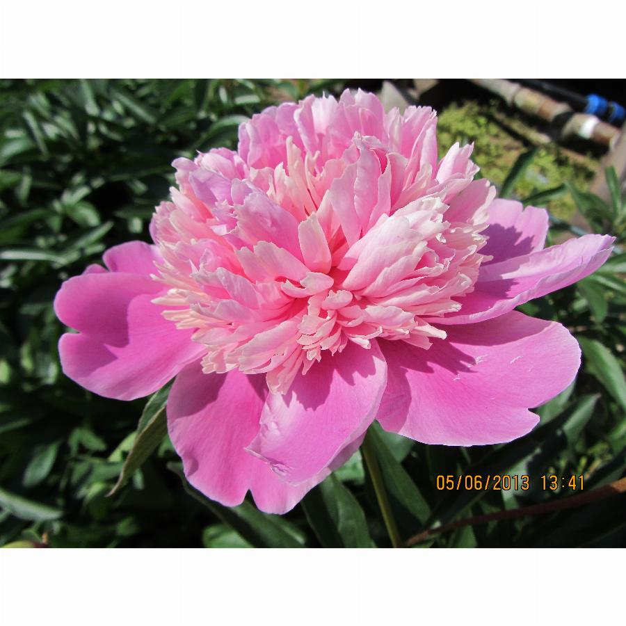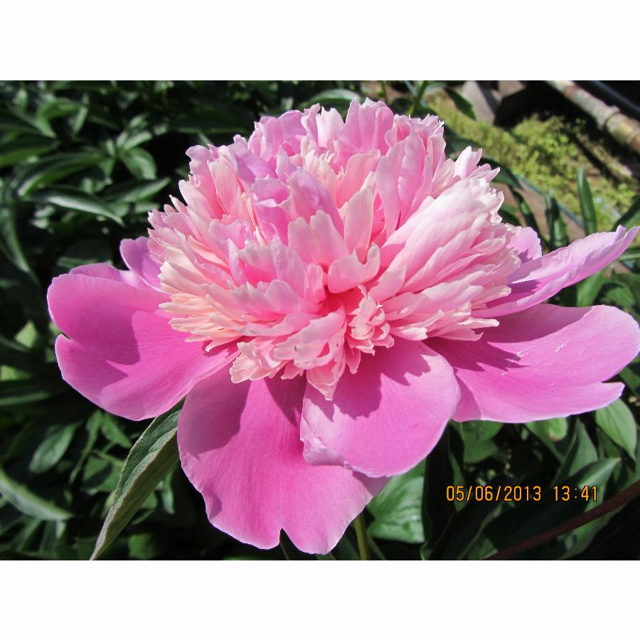 Высота:80 -100 см.Срок цветения:средний.Цветок:махровый,ароматный. Цветок розовато-кремовый, иногда белый с розовыми пятнами, диаметром 16 см. Одновременно на кусте могут быть белые, розовые или двойные цветки, у которых одна половина розовая, а другая белая, причем, в разные годы окрашен по разному: от почти белого до розового.