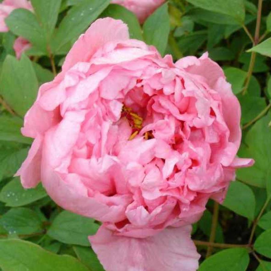 Крона ажурная. Листья длиной 10-25 см сложные, темно-зеленые, осенью фиолетово-желтые. Цветение в мае-июне, цветки диаметром 10-20 см, светло-розовые махровые. Требует хорошо дренированной кислой плодородной почвы, не переносит уплотнение почвы.