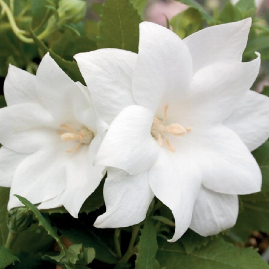 Многолетнее растение до 60 см высотой с мясистыми корневищами. Стебли прямые, тонкие, густо облиственные, у старых растений приподнимающиеся. Стебли и листья имеют сизоватый оттенок. Цветки крупные, ширококолокольчатые, до 8 см в диаметре, одиночные, белые с тонкими жилками; в бутонах вздутые, похожи на маленькие фонарики. Цветет с середины июля до 60 дней. Месторасположение: предпочитает открытые солнечные места, но выносит и полутень. Почва: умеренно сухая, свежая, рыхлая, богатая питательными веществами. Необходим дренаж. Застоя грунтовых вод растения не переносят. Уход: умеренно поливайте и удобряйте. Осенью срежьте. Зимостоек, но на случай бесснежной зимы желательно мульчирование или укрытие сухим листом. Использование: очень эффектны небольшими группами на газоне, хороши в букетах, срезку производят, когда раскроются все цветки. Партнеры: сочетаются с высокорослыми колокольчиками, аденофорой, низкими флоксами, гипсофилой.