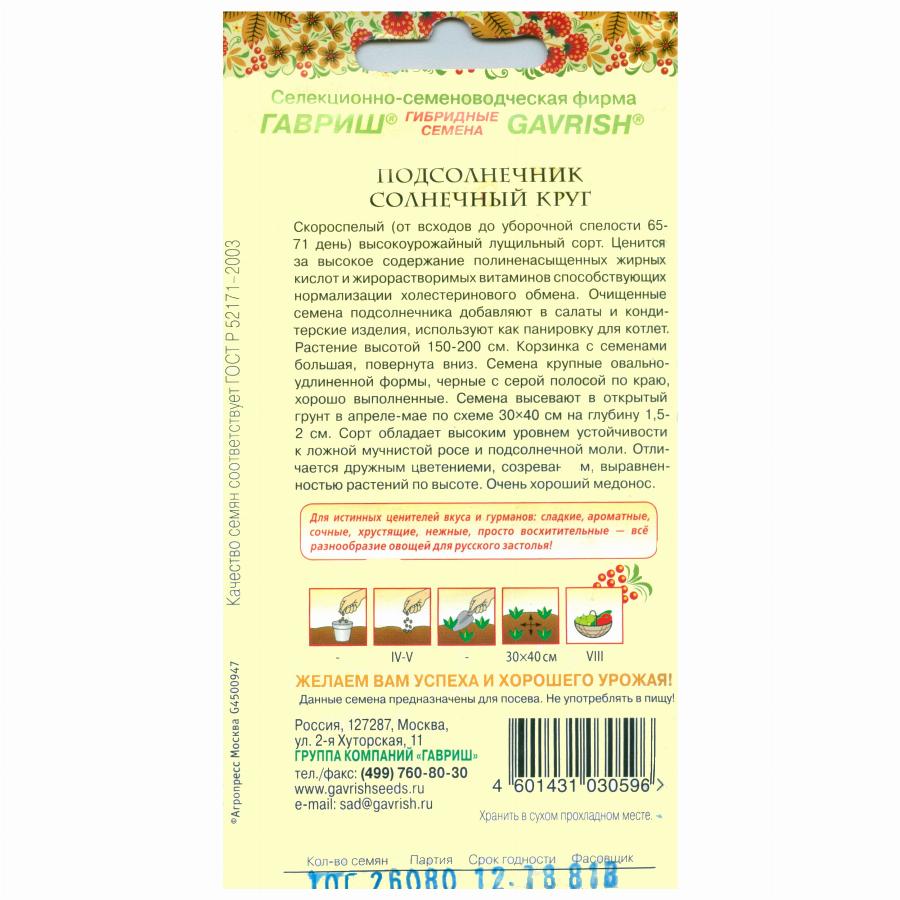 ПОДСОЛНЕЧНИК СОЛНЕЧНЫЙ КРУГ 10 Г гавриш