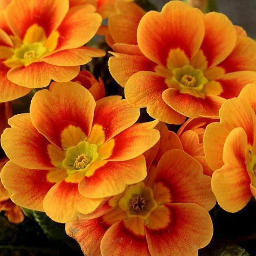 Цветки ярко-оранжевого цвета, диаметром до 5 см. Издают нежный приятный аромат. Цветонос -до 20 см; Период цветения — май-июнь, в течение 40 дней.Чрезвычайно зимостойкий гибрид, который может использоваться как многолетник даже в северных странах и регионах. Примулы неприхотливы,предпочитают полутенистые места,с рыхлой,плодородной,достаточно увлажненной почвой.На одном месте может расти до 5 лет.