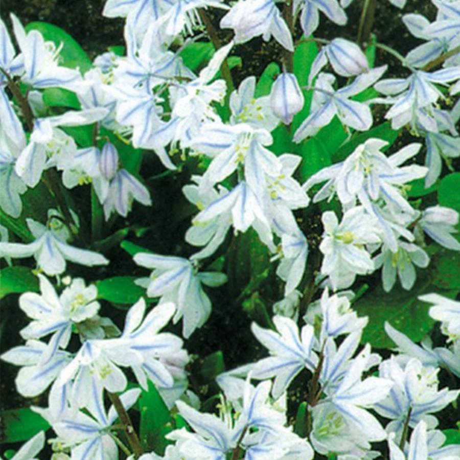 Цветки собраны в в кистевидные соцветия. Околоцветник колокольчатый, сросшийся у основания в короткую трубку, голубой с синей полоской по середине долей. Цветет в середине весны очень обильно.