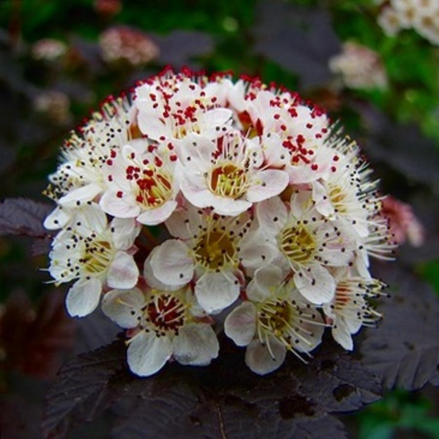 Кустарник достигающий 2 м высоты отличающийся в молодом возрасте выпрямленной формой. Листья темно – красные. Цветки белые с розовым оттенком, собранные в зонтичные соцветия диаметром в 5 см. Требует солнечного места. Растения растущие в тени не получают интенсивной темно – красной окраски. Хорошо растет на любой почве. Сильно устойчив к морозам и засухам. Особенно рекомендован для озеленения новостроек, насаждений в городских микрорайонах, но дает интересный колоритный акцент также в приусадебных садах. Хорошо переносит стрижку. Очень ценный сорт.