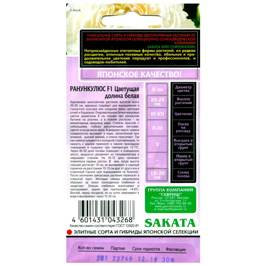 РАНУНКУЛЮС F1 ЦВЕТУЩАЯ ДОЛИНА БЕЛАЯ 3 ШТ гавриш