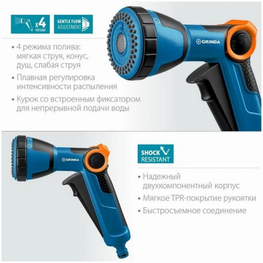 РАСПЫЛИТЕЛЬ ПИСТОЛЕТ 4 РЕЖИМА grinda 429165