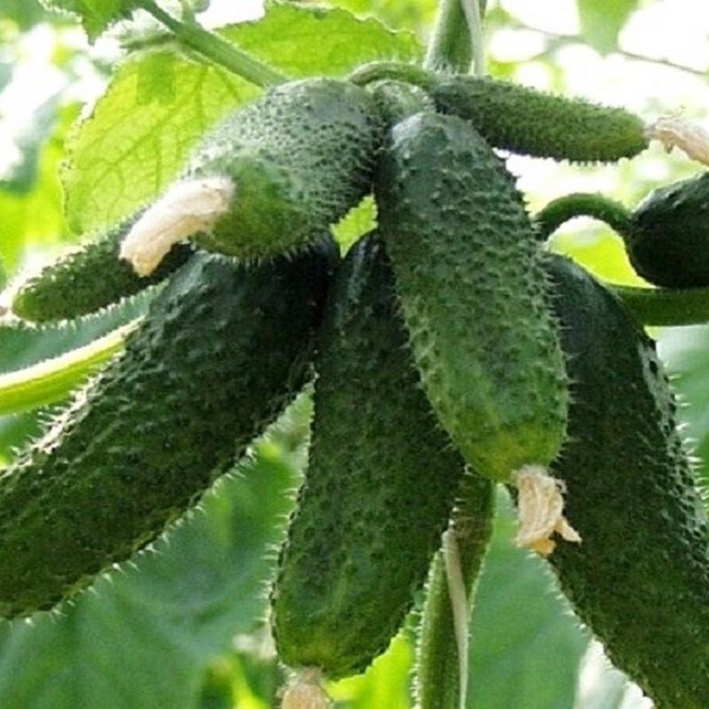 Ранний партенокарпический гибрид огурца корнишонного типа. В плодоношение вступает через 37-40 дней после полных всходов. Растение индетерминантное, сильнорослое, слабоплетистое, преимущественно женского типа цветения. Зеленец укороченный 12-15 см, среднебугорчатый, зелёного цвета, со слабыми белыми полосами, доходящими до середины. Масса зеленца 90-110 гр. Гибрид обладает интенсивным плодообразованием, склонен к пучковому образованию завязей. Устойчив к вирусу огуречной мозаики, кладоспориозу, мучнистой росе, толерантен к ложной мучнистой росе. Предназначен для выращивания в открытом грунте и теплицах любых типов. Рекомендуется для переработки и употребления в свежем виде.