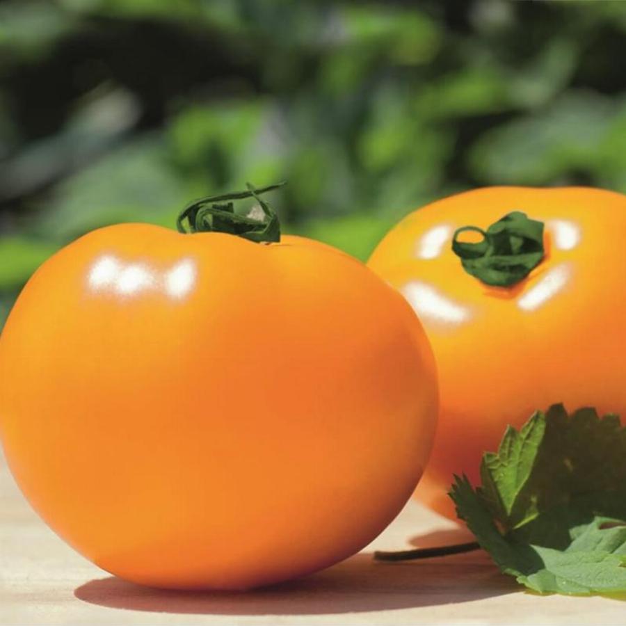 Гибрид среднераннего срока созревания (период от всходов до созревания 94-99 дней) для выращивания в открытом грунте. Плоды, средней массой 250 г, оранжево-желтые, без зелёного пятна, гладкие, плоскоокруглые. Соцветие простое, компактное, с 4-6 плодами. Растение детерминантного типа, средне рослое, средне облиственное. Лист среднего размера. Устойчив к фузариозу и вертициллёзу.