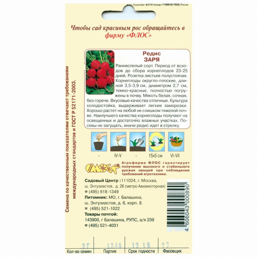 РЕДИС ЗАРЯ 2,0 Г флос