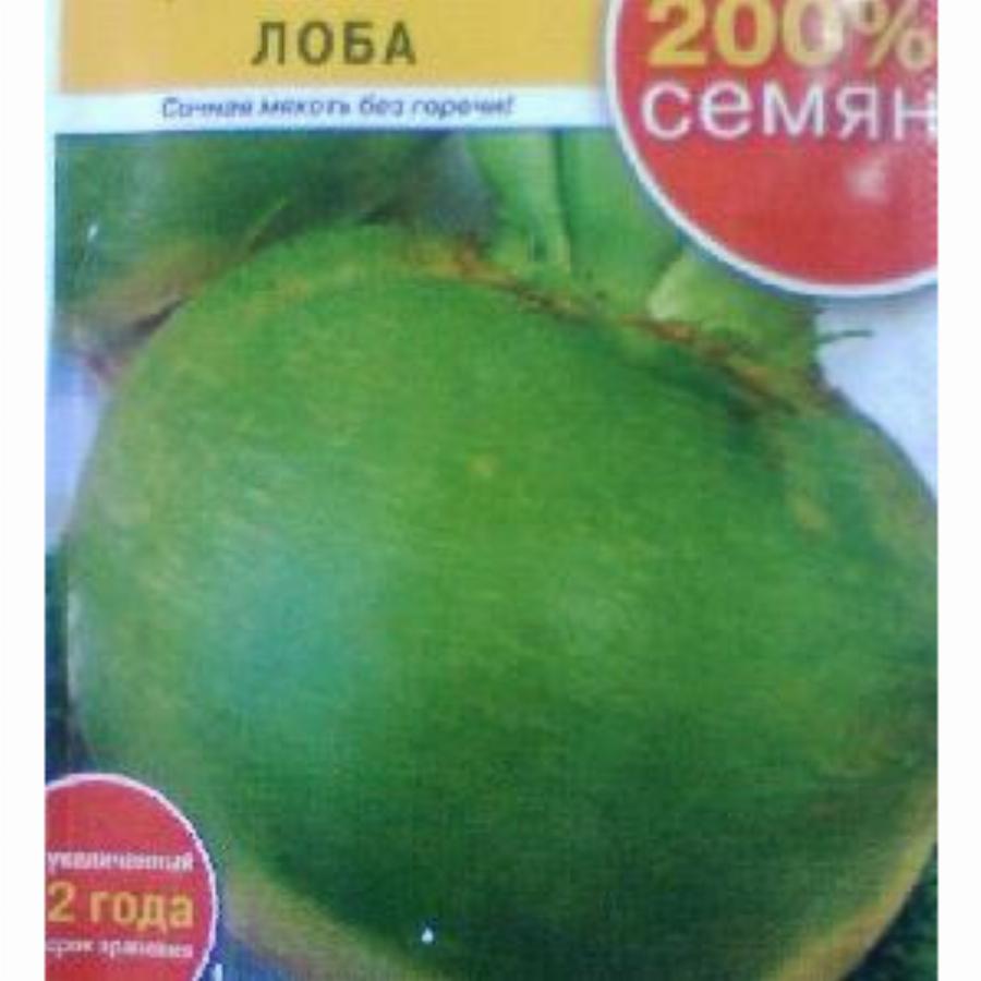 Лоба – раннеспелое растение. Корнеплоды ее округлой формы, слегка продолговатые, светло-зеленого цвета, за что ее иногда называют еще зеленой редькой. При правильном уходе на плодородной земле ее корнеплоды достигают веса 700-800 г. На разрезе корнеплоды лобы имеют светло-зеленый цвет, очень сочные, не горькие. Так как лоба является растением длинного дня, высевать ее весной или в начале лета нецелесообразно – растения начинают стрелковаться и товарных корнеплодов не образуют. Оптимальные сроки сева – вторая половина лета.
