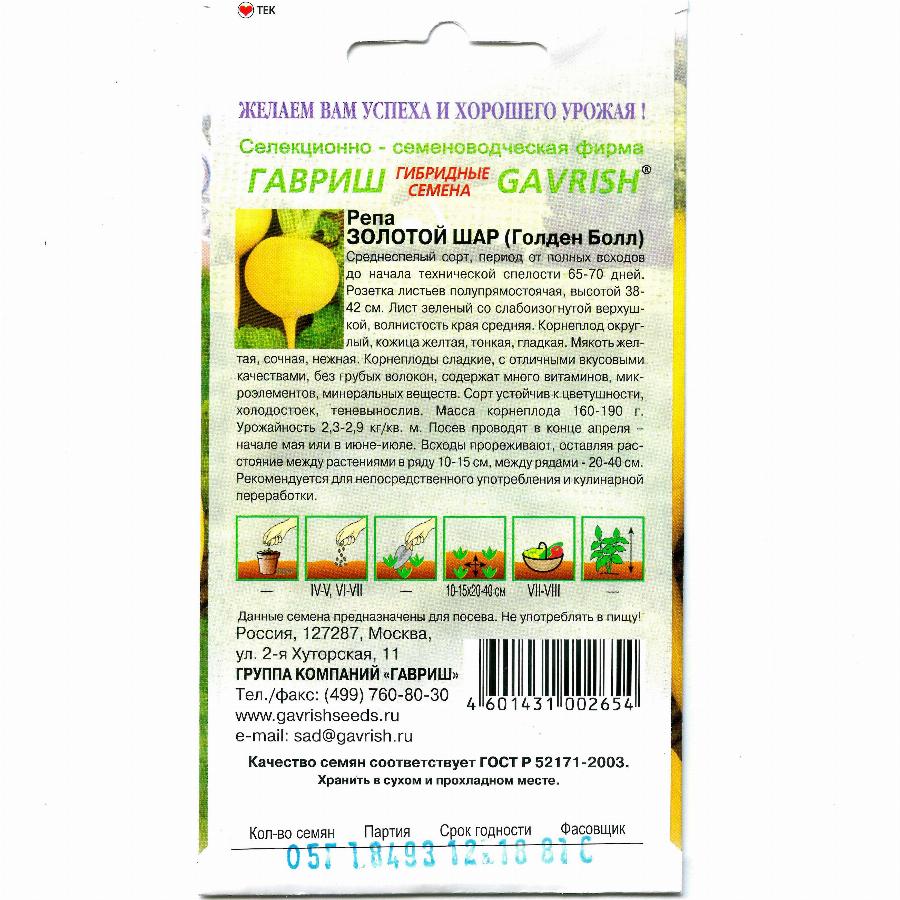 РЕПА ЗОЛОТОЙ ШАР (ГОЛДЕН БОЛЛ) 0,5 Г гавриш Цена: 26.60 р. Производитель: ГАВРИШ Страна производства: Россия