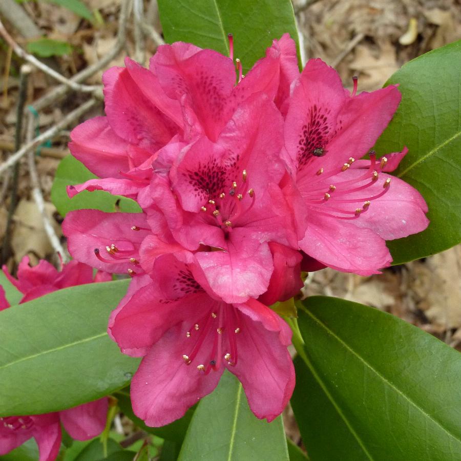Диаметр кроны взрослого растения: 2 м.Высота взрослого растения: 1.8 м.Форма: Вечнозеленый, кустарник с вертикально направленными ветвями. Цветки крупные, рубиново-красные с черным пятном и крапом на верхнем лепестке (до 6см), без запаха, собраны в компактные соцветия по 10-12 штук. Цветет в начале июня.Требования: Нуждается в посадке в кислую (рН от 4,5 до 6,5), рыхлую, хорошо дренированную почву, в защищенных от ветра, тенистых и полутенистых местах, не выносит переувлажнения. Нуждается в хорошем дренаже, ежегодном мульчировании и защите от весеннего солнца. Вполне морозостоек (до –32° C), однако в суровые зимы возможно подмерзание.