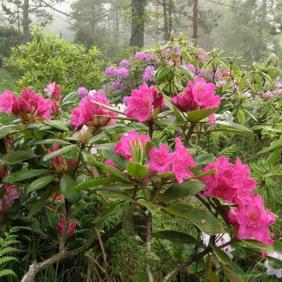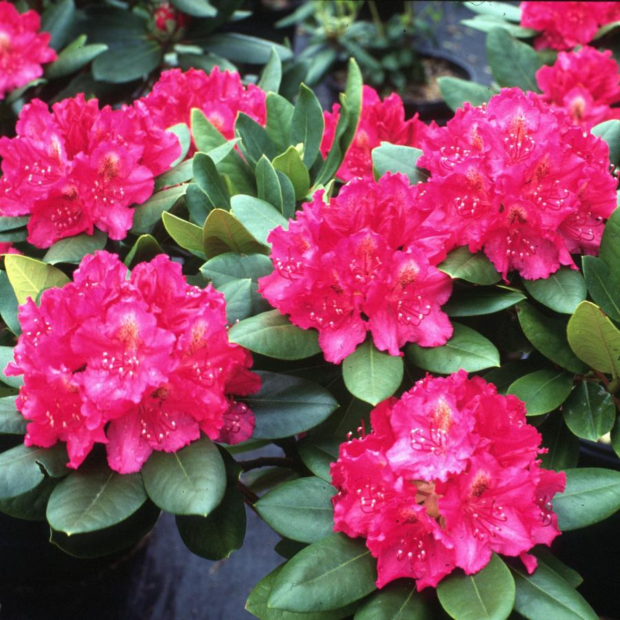 Красивый,вечнозеленый кустарник, необычайно эффектный во времяч цветения.Высота до 2,5м. .Скорость роста: До 15 см в год..Цветки: Очень крупные, воронковидные, со слегка гофрированными лепестками, пурпурно-красный с желтоватым крапом, собраны в щитковидные соцветия. Цветёт в июне.Зимостойкость средняя, требует мульчирования почвы и защиты кроны от солнца и ветра в зимний период. Растёт на рыхлых, кислых увлажнённых, но хорошо дренированных питательных почвах. Светолюбив. Декоративное применение: Одиночные и групповые посадки, японские сады, композиции с хвойными растениями.