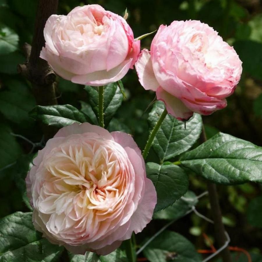 Куст высотой до 0,9-1м и шириной до 0,75 м. Цветы густомахровые, каждый насчитывает по 140 лепестков. Лепестки нежного розового цвета с фиолетово-красным отливом. Основной цвет-розовый. Насыщенность – бледная. Крайние лепестки более яркие по сравнению с центральными. Закрытый бутон напоминает чашу, а после роспуска он становится розеткообразным. Размеры – крупные (диаметр 9-12 см). Аромат очень сильный, с нотками груши и яблока. Морозостойкость до -23°С. Повторное, почти непрерывное цветение. Период цветения июнь-октябрь.