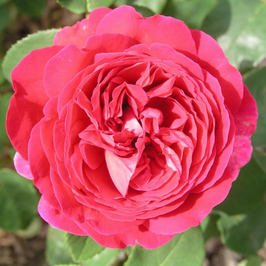 Чашевидные, яркие, темно-красные цветки с легким ароматом старой розы. Обильное цветение. Сильный ветвистый куст 110 см.