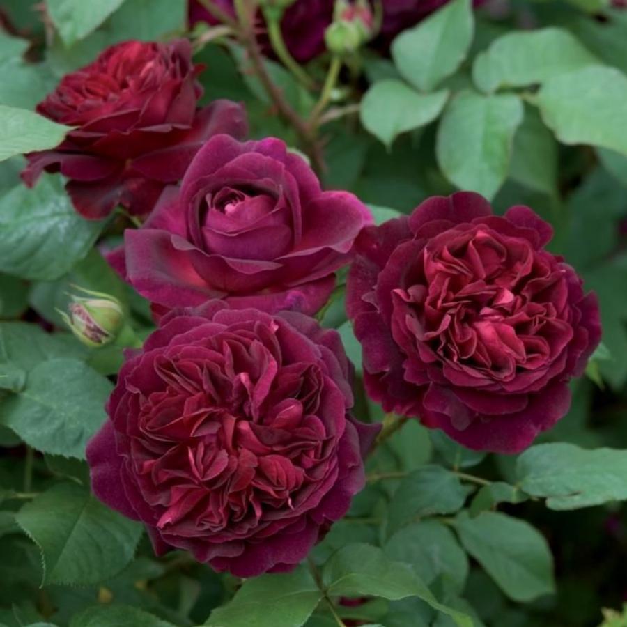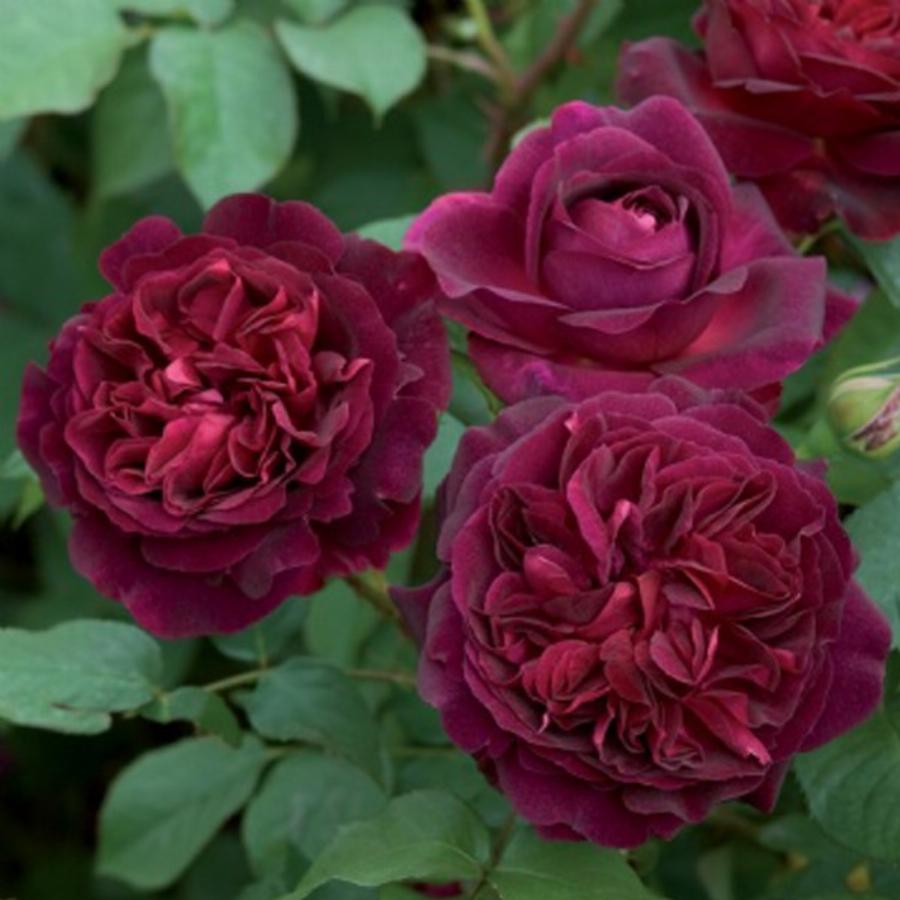 Сильнорослый, густой, ветвистый, высота 90–100 см, диаметр 60 см. Листья: зеленые, матовые, среднего размера. Цветы: бутоны малиновые, при распускании становятся бархатисто-бордовыми, чашевидные на ранней стадии цветения, позже распускаются до плоских розеток, довольно крупные, 8–10 см в диаметре, густомахровые (70–75 лепестков), собраны в небольшие кисти по 3–5 шт. Аромат: сильный, классический аромат старинной розы с фруктовыми нотами. Период цветения: с конца июня до первых заморозков, продолжительное, повторное, очень обильное.