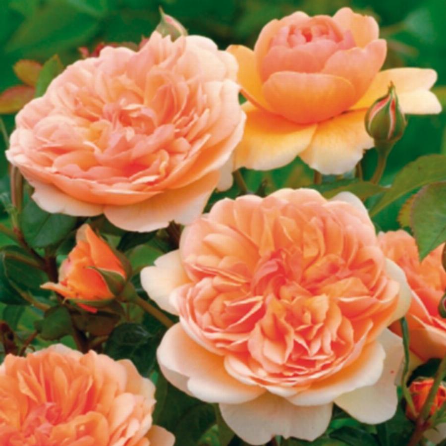 Высота растения 150 см. Эта роза образует цветки среднего размера насыщенного персикового цвета, плоские, со слегка разделенной сердцевиной; крайние лепестки немного заворачиваются и становятся светлее. Аромат насыщенный чайный. Листва и молодые побеги сначала бронзово-красные, затем становятся темно-зеленого цвета. Этот сорт растет бурно и относительно вертикально, что делает его идеальным претендентом на использование в качестве заднего фона в микс-бордерах. Очень устойчивый и надежный сорт.