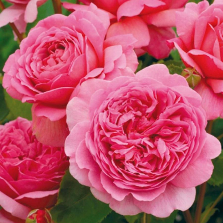 Высота растения 100 см. У этого сорта необычайно большие цветки теплого, насыщенного розового цвета. Цветки густомахровые, образуют глубокую чашу, которую обрамляют внешние лепестки более светлого оттенка. Несмотря на их размер, цветки никогда не теряют форму. Чтобы поддержать баланс между размером куста и цветков, эти розы рекомендуется сажать в группах по три. Аромат сперва чайный, свежий, затем по мере старения цветка удивительным образом переходит в лимонный, также приобретая нотки черной смородины. Очень здоровый сорт.
