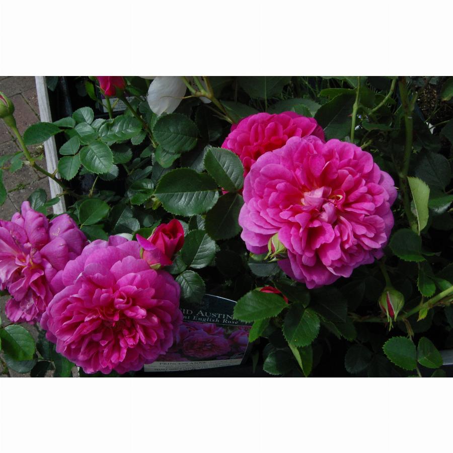 Красивый новый сорт, представляющий собой новое направление в селекции английских роз. Внешний вид заметно отличается от других сортов, обладая своим, особенным шармом, но при этом сохраняя классические густомахровые цветки английской розы. Только что распустившиеся цветки густо-розовые, почти малиновые, по мере роспуска выгорают до ярко-розовых. Изнанка лепестков — с интересным желтым подтоном. Лепестки довольно узкие, необычно плотные. Куст прямостоячий, листва довольно плотная, кожистая, очень блестящая. Превосходная устойчивость к заболеваниям. Цветет крупными кистями, цветение длительное и обильное. Аромат чайных роз, средней насыщенности. Благодаря компактному ветвистому кусту, идеально подходит для бордеров и живых изгородей. Названа в честь принцессы Великобритании, патронессы благотворительного общества Riding for the Disabled. Размер цветка 8-9 см, высота 100-120 см, ширина 90 см.