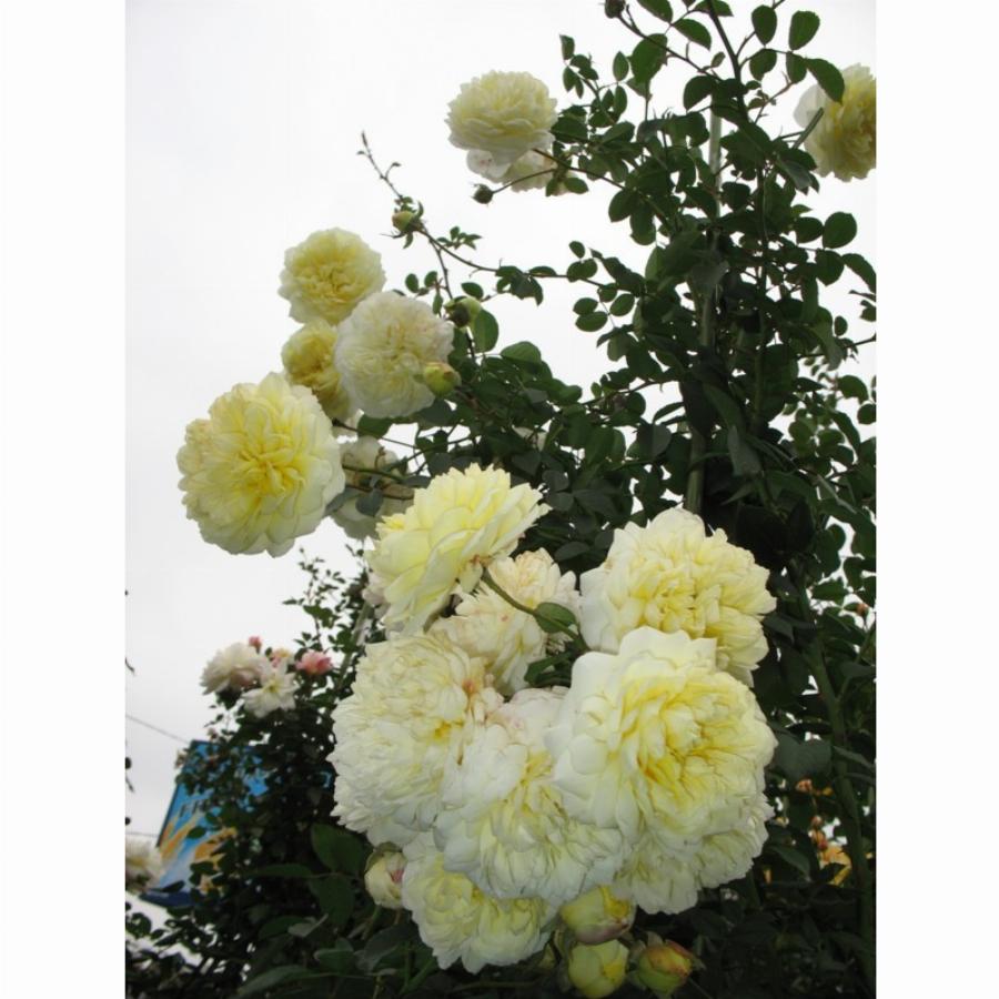 Отличная чисто-жёлтая роза, в которой удачно сочетается необычно сильный и здоровый рост с крайне привлекательными и изящными махровыми цветками. Цветки весьма большие, плоские, равномерно сформированные, с многочисленными маленькими лепестками. Будучи срезанными в вазы, они выглядят особенно элегантными и грациозными. Аромат сильный, прекрасно сбалансированный между классическим ароматом чайных роз и ароматом мирры. Кусты высотой 105 см и шириной 90 см. Зимостойкость хорошая. Повторное цветение хорошее.