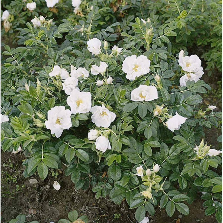 Раскидистый кустарник до 2 м. Цветки белые, ароматные, цветет все лето, особенно обильно в июне. Дает съедобные, лечебные плоды. Очень неприхотлив. Морозостоек и засухоустойчив.
