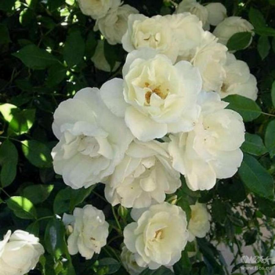 Они имеют классический белый или кремовый окрас, сердцевина желтая. Окрас соцветий изменяется, когда температура на улице опускается, на лепестках преобладают розовые оттенки. Поверхность полумахровая, диаметр каждого цветка способен достигать 9 см, на каждом стебле образуется 2-3 цветка. Куст средних размеров, высота способна варьироваться от 1 до 1,5 метров, побеги окрашены в светло-зеленый тон. Цветет долго и практически непрерывно. Расположение соцветий подобно фолиантовым сортам роз. Является ярким представителем подгруппы плетистых роз клаймбинг. С каждым днем эта разновидность приобретает все большую популярность.