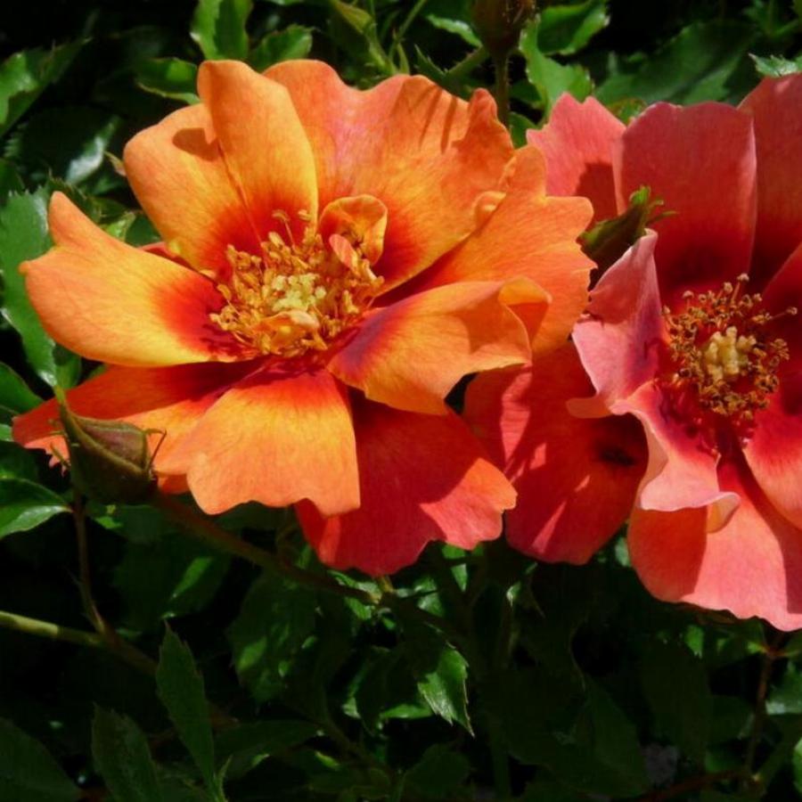 Компактный кустарник. Высота взрослого растения — до 60 см., диаметр кроны — до 60 см. Цветок абрикосово-оранжевый с желто-розовым оттенком, медными штрихами и бордово-красным глазком, по мере распускания становится желтым, плоский, простой до полумахрового, 8 — 10 лепестков в одном цветке, диаметр цветка 4 — 6 см, обладает легким ароматом. Цветение: раннее, обильное, непрерывное, продолжительное до конца октября, цветки собраны в соцветия, на одном цветоносе в период массового цветения насчитывается 5 — 10 цветков одновременно.