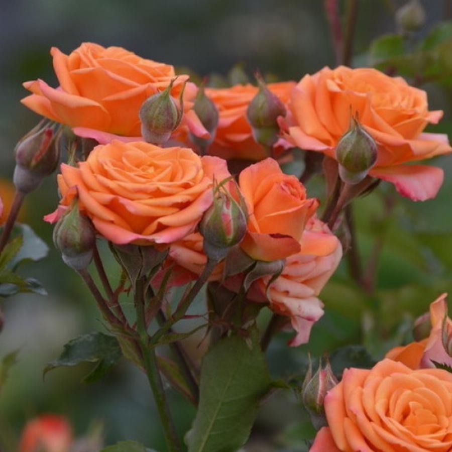 Роза-спрей Алегрия имеет форму куста, вырастающего до 60 см в высоту и 40 см в ширину. Ее отличают высокая декоративность и безостановочное цветение. На одной ветке может распускаться до 80 соцветий. Бутон оранжевого оттенка имеет форму изящного бокала, размер цветков достигает 5 см. Распустившиеся соцветие держится до 14 дней. Небольшие бутончики собраны в зонтиковидные соцветия, образующие пышные «шапки» в центре розового куста. Растение цветет весь сезон, отлично зимует в открытом грунте и не требует особого ухода, отличается хорошей устойчивостью к заболеваниям.