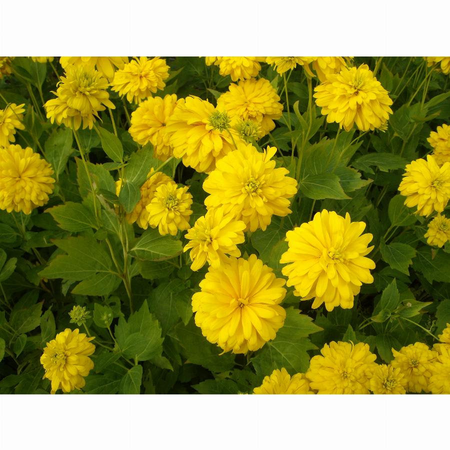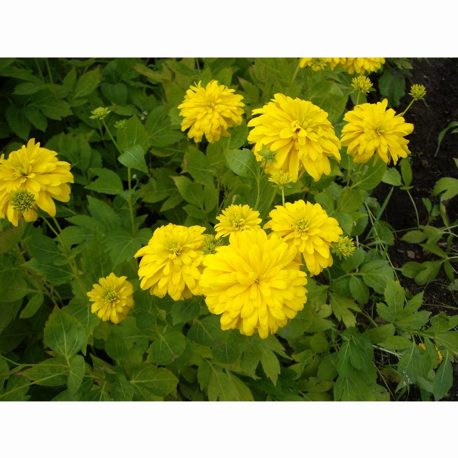 Многолетнее травянистое корневищное растение, высотой 70-80 см. Стебли прямые, гладкие, ветвистые, слабо облиственные в верхней части. Соцветия до 10см. в диаметре, махровые. Язычковые цветки ярко-желтые. Цветет с июля по сентябрь.