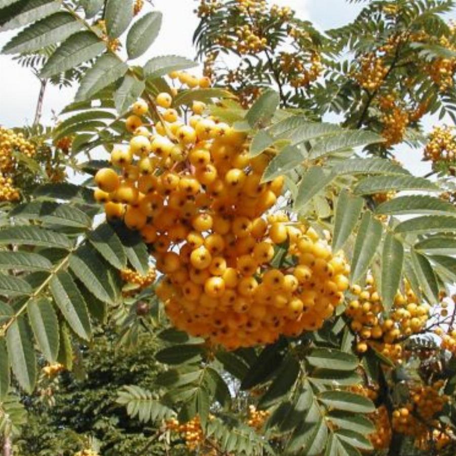 Дерево или кустарник. Высота 6-12м, диаметр кроны 4-6м. Крона коническая. Период цветения: Май-июнь. Цветки белые в щитковых соцветиях. Плоды съедобные, красные. Листья эллиптические, сверху зеленые, снизу серовато- зеленые. Осенью оранжевые или красно-коричневые. Место: Cолнце-полутень. Почва: Свежие, слабокислые, хорошо дренированные почвы, без заболачивания и засухи.