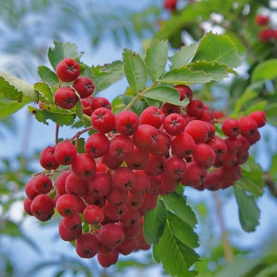Сказочная рябина неприхотлива в уходе, что позволяет ее выращивать на любых почвах и участках. Дерево сорта имеет среднюю высоту. Тип кроны овальный, обильно покрытый листвой. Кора имеет серый оттенок. Побеги удлиненные, прямые. Спелые плоды имеют красно-оранжевый оттенок. Весит каждая ягода около 2 г. Вкус рябины сладко-кислый, мякоть достаточно плотная. Листья плоские, ярко-зеленые с матовым оттенком.