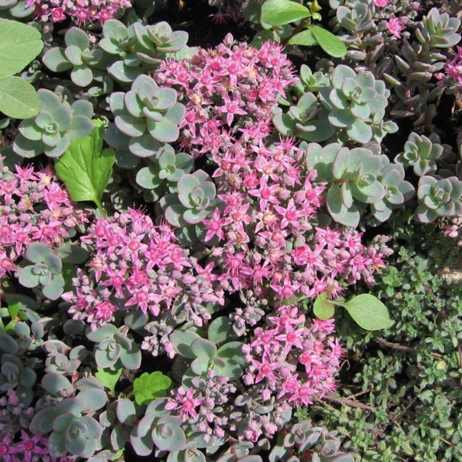 Можно назвать кустарничком: его многолетние стебли полностью одревесневают. Хороши бордюры из этого очитка: стебельки легко обламываются и весной обычно оставляют 15-20 см их высоты. Листья округлые, сизо-голубые. Цветет в конце июля — августе ярко розовыми цветками, собранными в щитки. Очень неприхотлив. Зимует без укрытия.