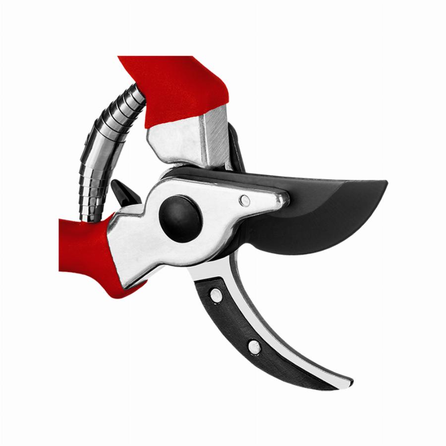 Лезвия секатора из высококачественной нержавеющей стали и изготовлены из высококачественной закалены. Верхнее лезвие остро заточено. Тефлоновое покрытие лезвие от воздействия окружающей среды и увеличивает срок службы секатора. Рукоятки из алюминия имеют эргономичную форму и лёгкий вес, это снижает утомляемость при выполнении садовых работ. Максимальный диаметр среза 18мм.