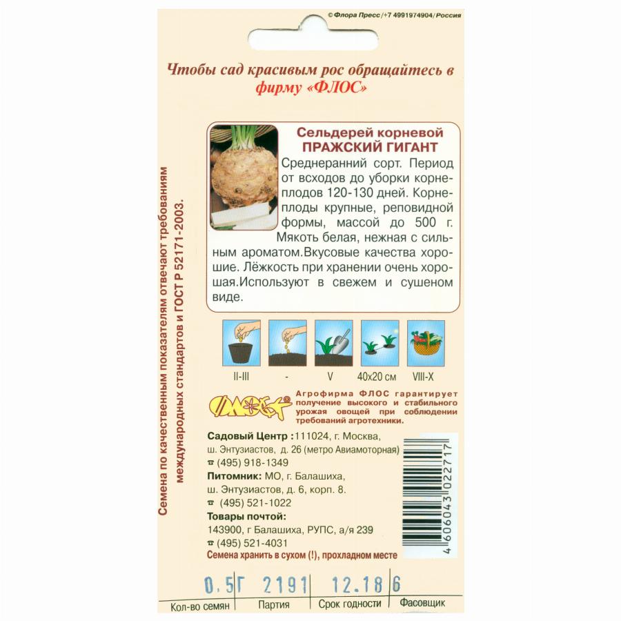 СЕЛЬДЕРЕЙ КОРНЕВОЙ ПРАЖСКИЙ ГИГАНТ 0,5 Г флос