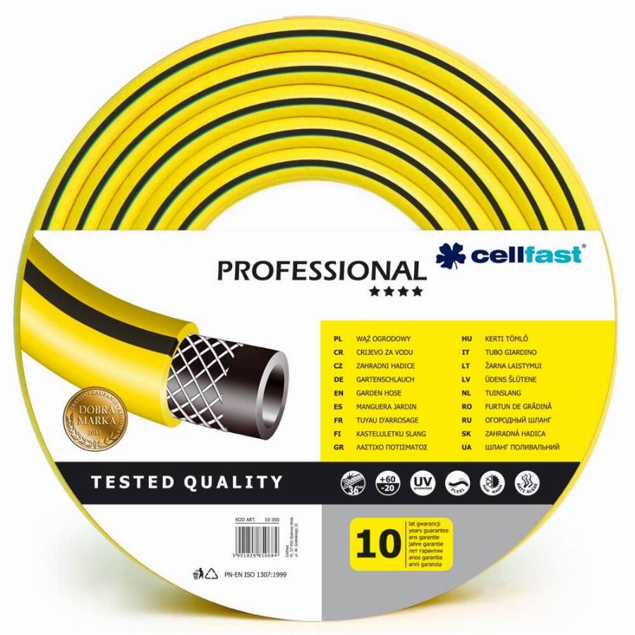 Трехслойный шланг. Крестообразная армирующая оплетка сделана из высококачественной полиэстеровой нити, шланг защищен от скручиваний, блокирующих струю воды, устойчив к ультрафиолетовому излучению и нарастанию водорослей внутри шланга, чрезвычайно прочен и эластичен даже при низких температурах. Пределы температуры: -20/+60°C. Длинна шланга: 50 метров, диаметр 1/2″. Страна производитель: Польша.