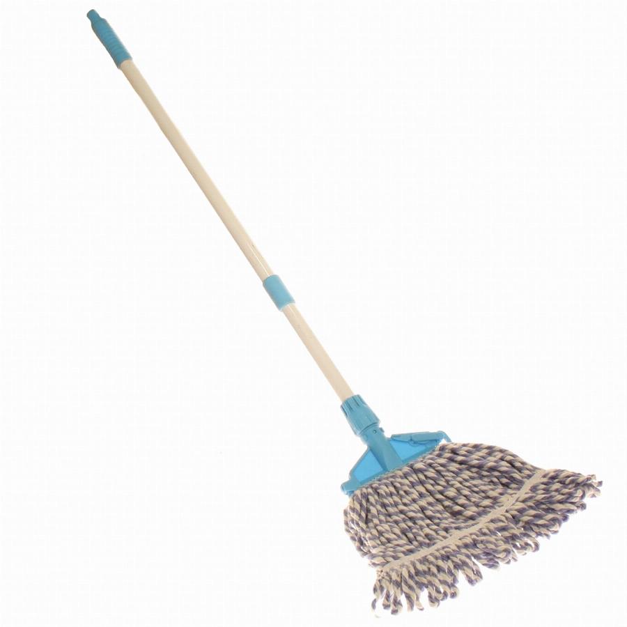 Швабра с телескопической ручкой и прижимным механизмом, который надежно закрепляет тряпку.