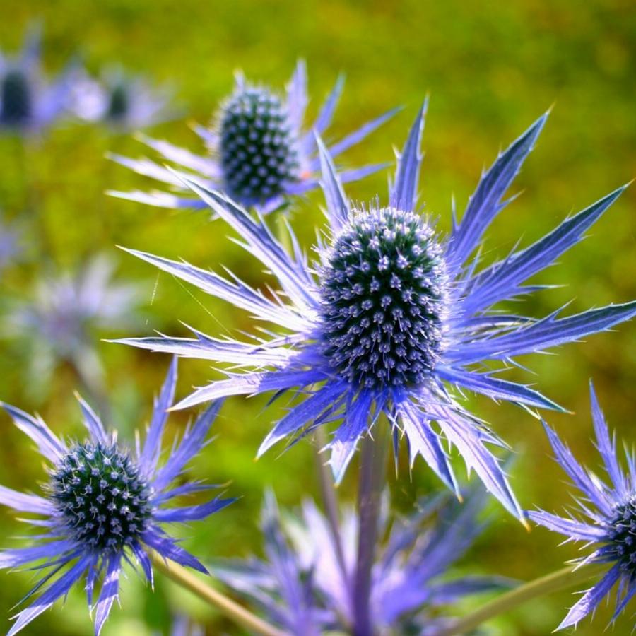 Синеголовник относится к уникальному многолетнему виду растения, может достигать высоты 1 м. Отличается синевато-фиолетовой окраской, имеет ветвистый стебель, Цветки синие, собраны в головчатые, продолговатые соцветия. Место: Солнце. Почва: Легкая, песчаная или известковая, без застоя воды.